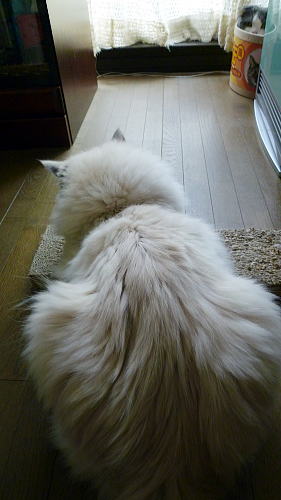 ちょくちょく気にするも・・・結局、玄関の奥に退避!