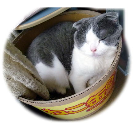 下のところは、まあるく爪とぎダンボールが敷き詰めてあって、