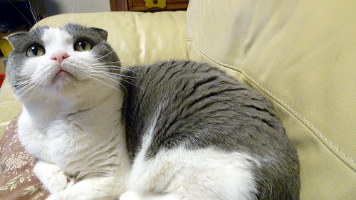 でっかく、爪とぎを腕置きにしているラッ君。。。