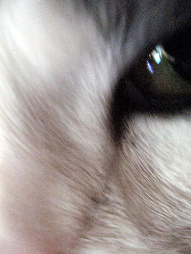 実は、この雑種お猫様は、毛の先がグレーで、根元は白い、