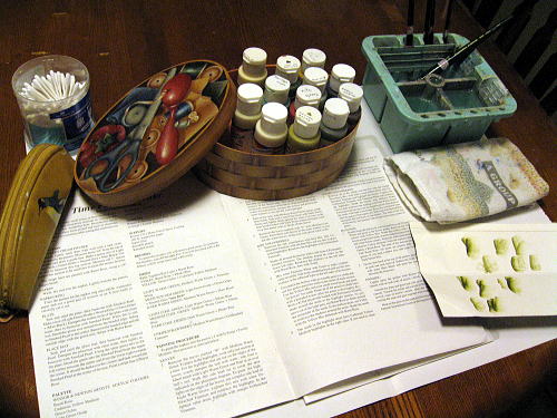 (今回、とりあえずいる絵の具をチョイス!ちなみに、この入れ物。遠い昔の作品。)