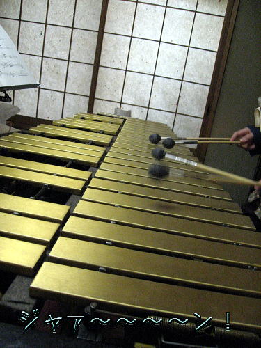 マリンバさんの音を電気で増幅させて